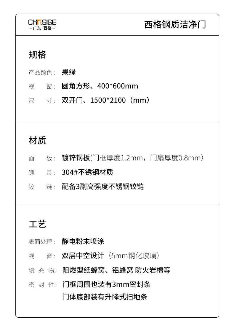 產品簡介:廣東西格大型凈化門生產廠家