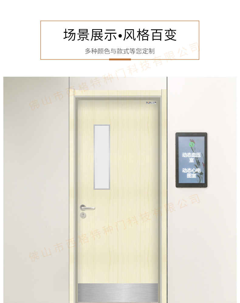 產品簡介:chnsige西格特種門,專業生產醫院門,醫院診室門,醫院辦公室門,醫院衛生間門,木質醫院門,鋼質醫院門,多鐘款式、顏色,尺寸可定制。