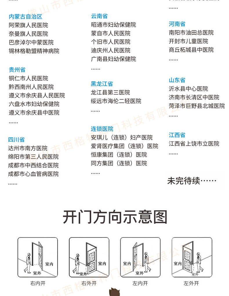 產品簡介:chnsige西格特種門,專業生產病房門,醫院病房門,醫院病房木門,病房木門,木質病房門,鋼質病房門,多鐘款式、顏色,尺寸可定制。