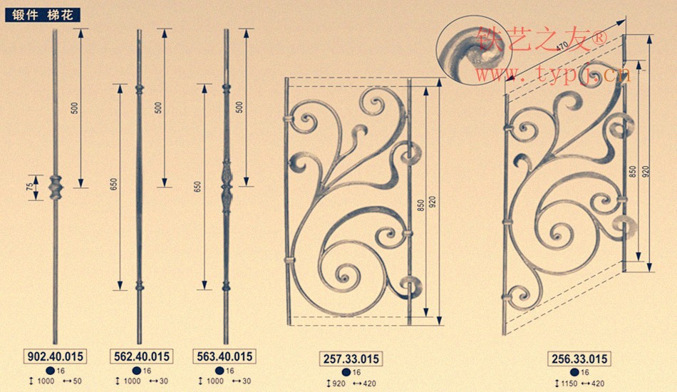 無錫鐵藝護欄廠專業做鐵藝鍛件梯花等鐵藝相關產品配件的設計制作。產品廣泛應用于企業.學校.賓館.小區.庭院等的鐵藝工程。產品款式豐富,款式新穎,做工精致,價格合理,是您鐵藝企業接單,搶單的最佳助手。特殊產品款式可以來樣來圖制作,自營工廠品質保證,價格保證。 常年供貨國際市場。產品豐富,價格合理,歡迎訂購。