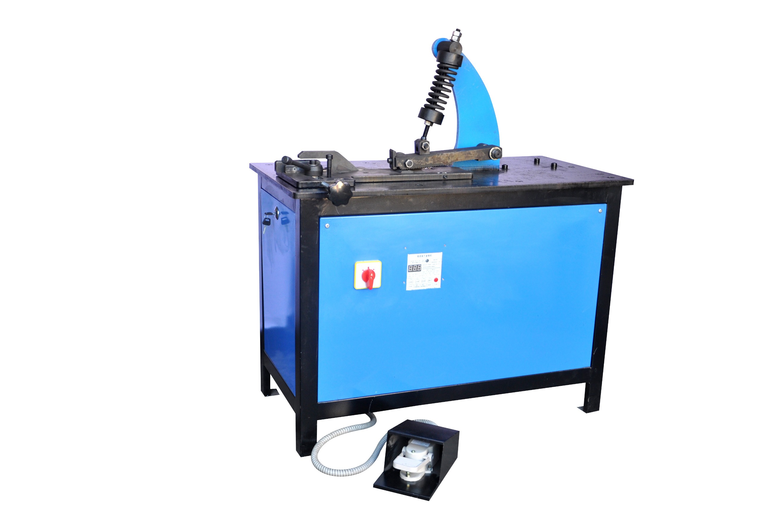 rolls. Can after is heated with different specifications of flat iron, square steel, round steel(fishtail)tightly into volumes, like a flower core shape formation. Greatly improve the elegant art style of iron. Is the indispensable mechanical equipment in the production of iron. This machine is equipped with three kinds of specifications, can be rolled into a ?30 、?40、?50 diameter size of the volume flower. Basically meet the production of iron art making in different specifications of flat iron, square steel, round steel, square tube, pipe(fishtail) end coil requirements. The machine is convenient and quick to replace the mold, easy to adjust, easy to operate. High quality coil, and consistency, and high production efficiency.